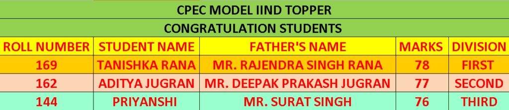 | 168 | TANISHKA RANA | MR. RAJENDRA SINGH RANA | 78 |